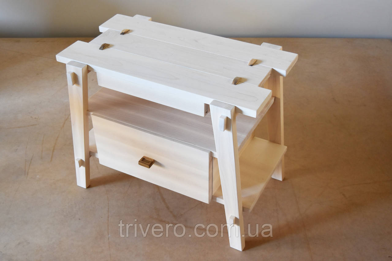 Тумба виготовлена з масиву клена та покрита білим маслом.